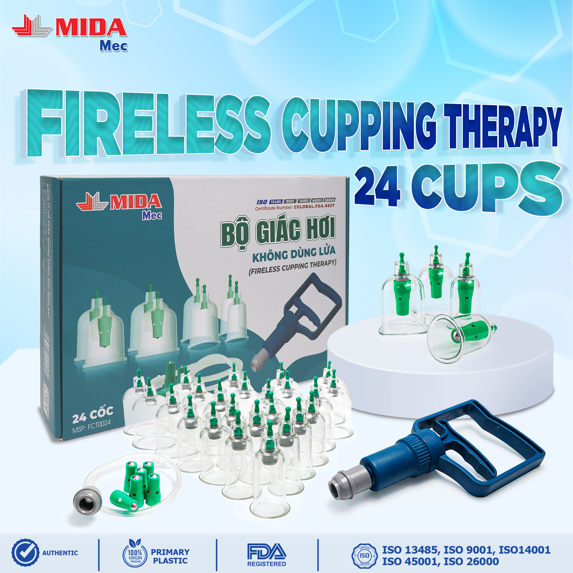 - Cups made from high-grade virgin PET plastic: Provide excellent elasticity, prevent pain during cupping, and ensure user safety. This material also boasts high durability, minimizing cracks and breakage from accidental drops.