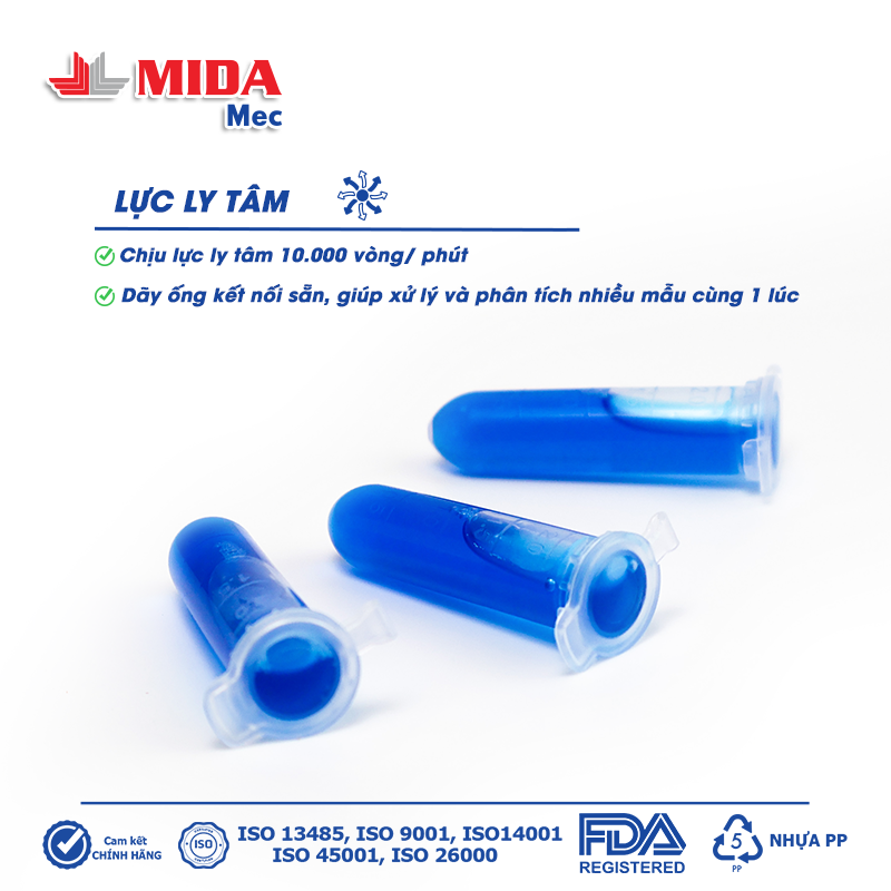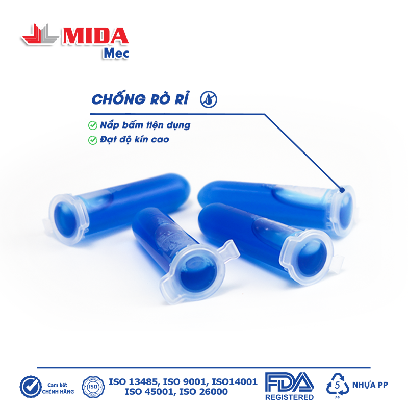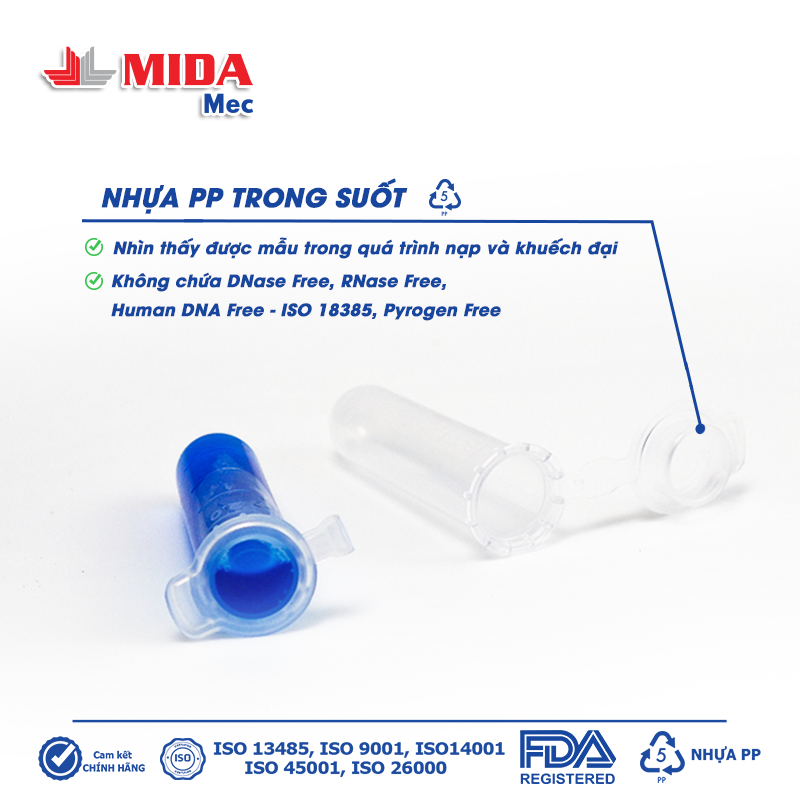 – Khuyến cáo: Ống nghiệm liền nắp Tuýp 2 ml MidaMec chỉ sử dụng 1 lần.